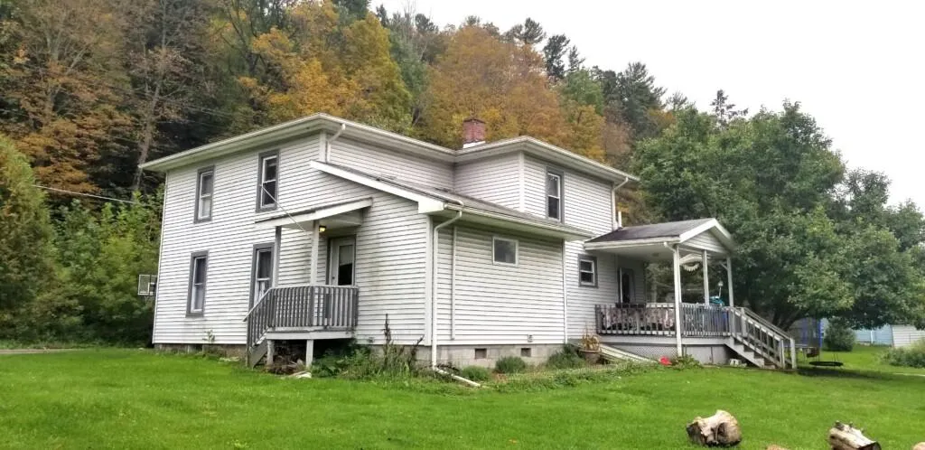 Spacious 2,032 sq. ft. home with some updates featuring 3 bedrooms, 1 bath, formal dining room, foyer and a nice 1.3 acre yard with fruit trees. There is a traditional stone foundation with a root cellar and an outside bilco door. The house is heated with natural gas hot water baseboard, wrapped with vinyl siding, and has had some replacement windows.