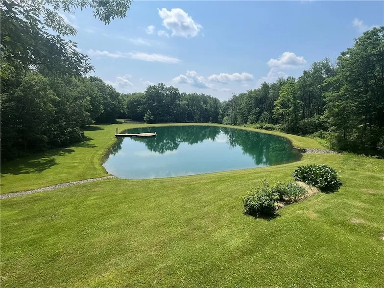 Are you looking for your private serene setting? Look no further. Picture yourself on your spacious deck overlooking the splendor and beauty zof the pond and surrounding area. Sit on your custom dock, toss a line in to catch a perch or just listen to the frogs and watch nature. The crystal clear spring fed water will refresh your body and mind. The property boasts 52.34 acres of woods, a field and manicured grounds. A spacious 3 bdrm, 3 bathrooms home, 2 bedrooms on the main level & 2 full bathrooms plus main floor laundry. Kitchen offers cooktop in the island and peninsula. Separately, there is a dining room connected to the living room with cathedral ceilings and abundance of natural lighting coming in the new French doors to view the outdoors. The lower level hosts ample space with 1 bedroom and full bath. Water hook up also in the wall for a wet bar. There is a spacious room for of...