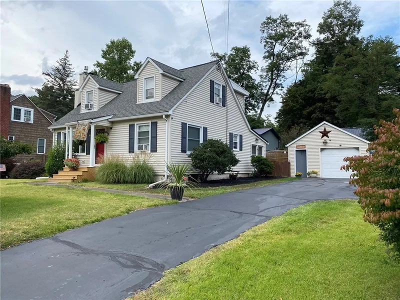 Well maintained 3 bed, 2 bath cape on the West side of Elmira. All new within the past 6 years-- Roof, furnace, 200 amp Electric,Bathroom, & Hot water tank! Enjoy a private fenced in back yard which includes a hot tub and entrance to 4 season back porch. Traditional hardwood floors throughout which have been refinished. Full basement, dry and partially finished. All appliances included. Garage and shed complete this true "turn key" home!