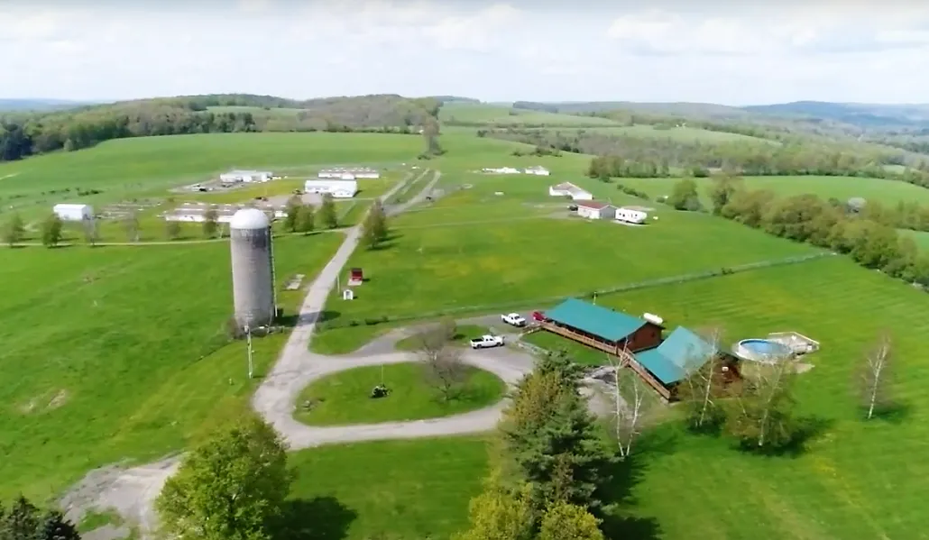 Central NY Farm. 425 acres of beautiful land all in one block on a quiet dead end road. 230 acres tillable all in hay, Good soils typically 3 cuts of hay. 120 acres in pasture with 4 ponds for watering cattle, balance woods. Owner currently has 180 acres in high tensile fencing. Six outbuildings for miscellaneous uses including a large shop and several buildings to raise pigs and beef. Two good log homes. Both built in 1997. First Home is a 3 bdrm Ranch home with large family room, kitchen, and dining room. Full poured concrete Basement. Could be used for additional living space if needed. Nice big porch overlooking farm. Second home Ranch Log home just recently remodeled. 3 bdrm, 2 bths, full basement. Oil hot water heat. Home has a large front porch with similar views. Both homes are in good shape, move in ready. Drilled well. Modern septics. This farm is currently being used to mak...