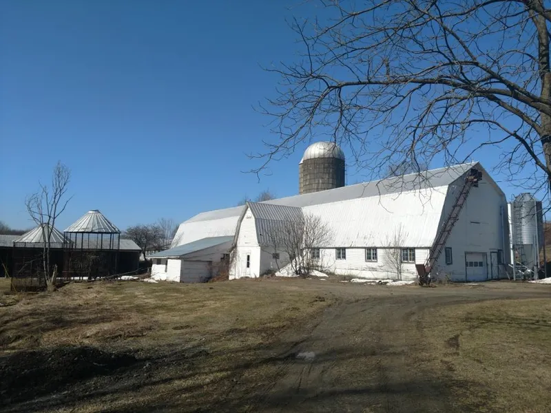 Hill top ORGANIC Dairy Farm on 98 acres of prime land with additional land available. Located in the geographical center on New York with easy access to several markets. The land features quality tillable soils for corn or hay. Fenced pastures for dairy or beef cows with TWO ponds. All tillable land accessible by long road frontage on two separate roads. Approx. 60 acres tillable, 56 acres in pasture and the balance in woodlands. Structures include a grand 246 foot two story dairy barn rebuilt in 1962 featuring 113 tie stalls and stanchions for young stock and milkers. 1,500 gallon bulk tank and compressor, vacuum lines, water bowls and Patz Barn Cleaner. 20x50 cement silo with unloader and a separate grain bin. Second story with hay bale conveyor or drive right in and unload. Cement bunk silo in back. Large three sided equipment barn can be used for heifers. 20x40 maple sugar house with...