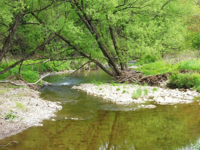 A River Runs Through It. Very rare find in Chenango County on 55.1 acres. Property includes a renovated milk house currently used as a cabin with drilled well, septic and electric utility access. Land features approximately 10 acres tillable planted field with a fishable trout stream separating the woods from the farm land. Hidden open areas ripe for wildlife food plots. Marketable timber. Trails throughout. Top notch hunting and recreation property here. Located on a quiet paved road with few neighbors. Very reasonably priced. Do not hesitate to make your appointment today!
