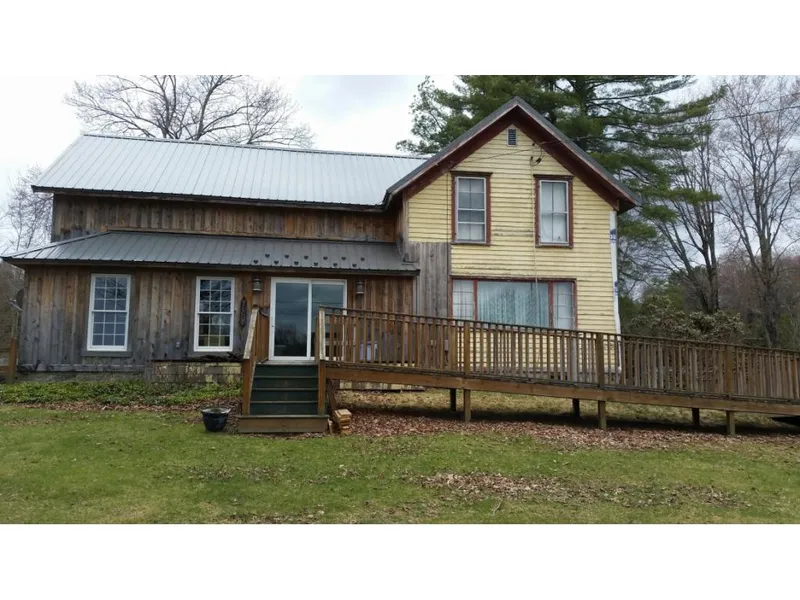 Come take a look at this farmhouse that has a new face!! Numerous updates throughout! New metal roof, siding, front deck, septic, well pump, hot water heater and furnace. Hardwood floors, in main house, tile and carpeting in addition, wood fireplace insert in Livingroom, pellet stove and sliding glass doors in family room that lead to stone patio, park like yard, there is even room to expand!!