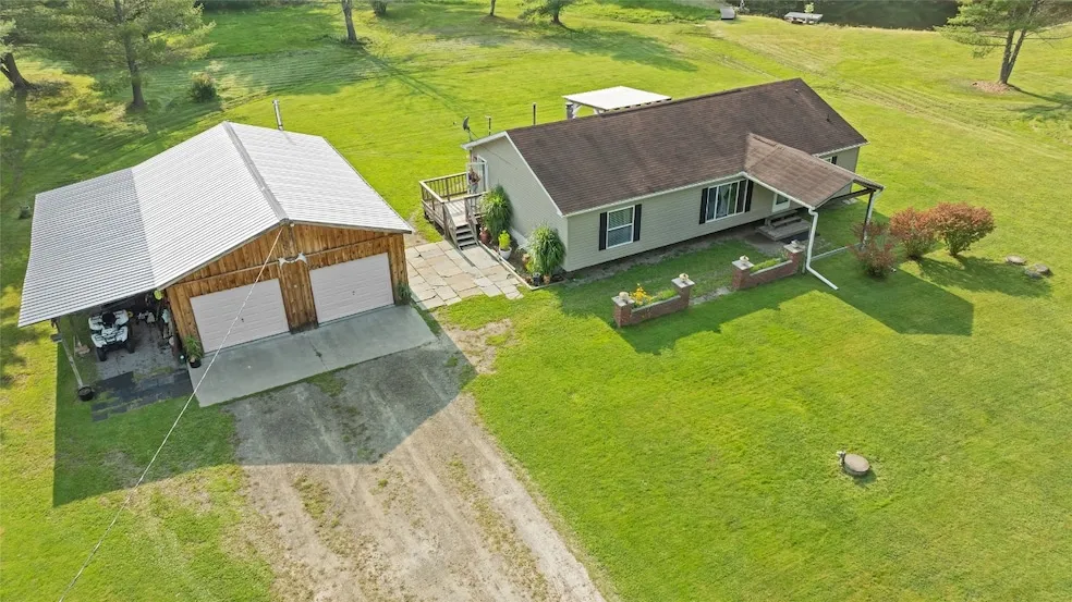 Welcome to your Private Country Retreat. 24 acres on a dead end town maintained road with a 3 Bedroom 2 Full Bath home on a full foundation. Large open concept Living, Dining and Kitchen, Primary Bedroom with Bathroom and a Large walk-in closet, 2 more bedrooms and a full bath on the other side of the home, Large Laundry area with an entrance off the side deck. The finished basement offers a large family room with a pellet stove, Office area and a Utility Room with an outside entrance. Outside you will find a back covered deck accessed through the Dining Room sliders, Oversized 24x32 Garage with a 10x32 Lean to, Whole house Generator System, your own pond for swimming or fishing (Sunnys, Walleyes, Bass), Firepit area, and 24 acres for hunting, 4-wheeling or just enjoying nature. This home is move in ready. Drone tour of the property