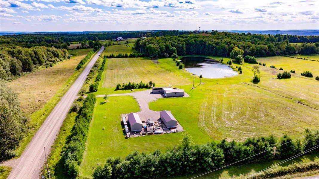 Beautifully set, this mostly open 28 acre parcel is highlighted by two crystal-clear ponds and panoramic countryside views in a peaceful, park-like setting. The grounds are well manicured and maintained, while the ponds offer an efficient aeration system for beautiful clear water to sight the abundance of Bass & Bluegill. The property features a unique homestead getaway blending modern, tasteful living space with a simple, efficient lifestyle. Every detail has been thoughtfully planned and meticulously maintained. Tower Rd offers quick and easy access to some of the most popular and well-known recreational opportunities in Chenango County - the McDonough State Forest, Bowman Lake State Park, the Finger Lakes Trail, and the NY Snowmobile Corridor. For more info on the McDonough State Forest and the additional opportunities noted above, please visit the following NY DEC site: This well insulated structure consists of two 14' x 36' sheds with connected living space offering comfortable year-round living potential with a drilled well, two propane furnaces, and electric baseboard heat. Inside, the open kitchen and living area feature sliders to the exterior and a cozy woodstove for added efficiency. The modern bath includes a spacious walk-in shower, incinerating toilet, and stylish vanity, while a large bedroom completes the interior layout. The true highlight is outdoors-panoramic countryside views in a park-like setting with well-kept grounds. Two additional 14' x 36' storage buildings, both with electric and heat, provide excellent space for hobbies, workshops, or equipment. With frontage on both sides of quiet Tower Rd plus additional frontage on County Rd 10, the property offers easy access to Norwich for shopping, dining, and amenities. A rare opportunity to enjoy a peaceful country get-away with modern comforts, recreational ponds, and versatile land use.