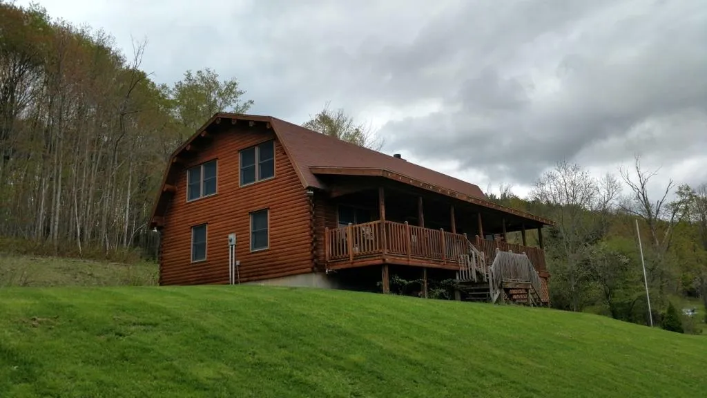 Private and secluded Cedar Log Home on over 50 acres with mountain views! Hunting and fishing right out your front door. Owner designed and landscaped to provide privacy & seclusion. Enjoy the peace of the countryside with this exceptional log home on over 50 acres of wooded land. The home features a generous open floor plan with river rock fireplace in the family room, many windows and cathedral ceilings. Quality appliances, efficient radiant floor heating. Full walk out basement with Superior Wall construction & 9 foot ceilings providing additional living space. Large 1st floor master bedroom with full bath and plenty of closet space with built in storage. Gorgeous wood work throughout including hard wood flooring. Rocking chair porch to view sunsets over the hills. The hunting and recreation opportunities are top notch with 50 acres bordering active farmlands. Land features two spring...
