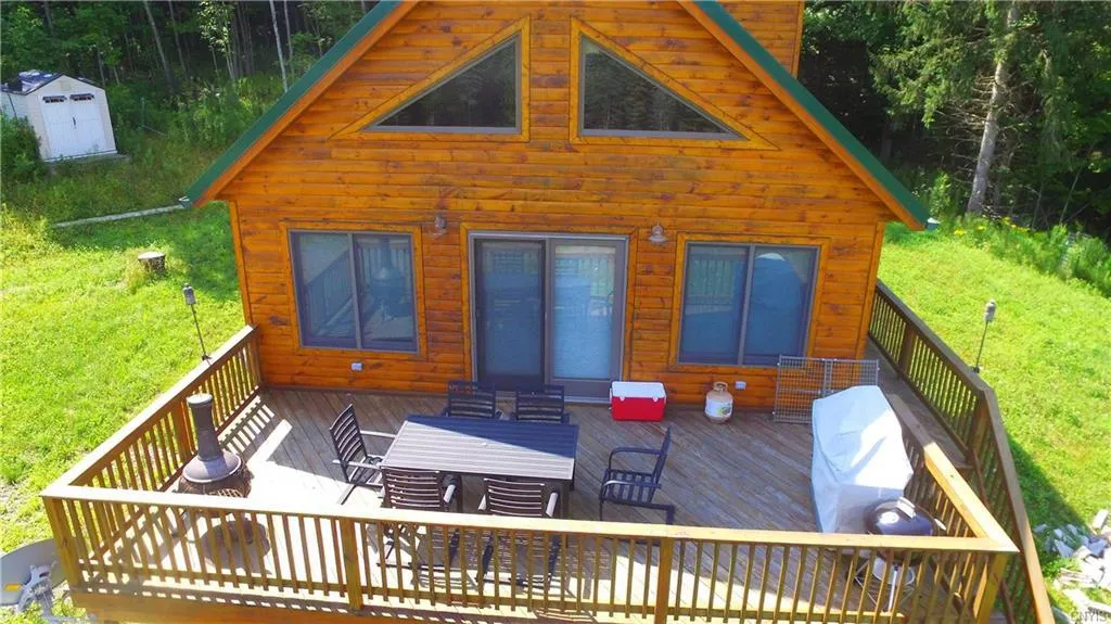This is truly a unique property. The beautiful setting gives you the feeling of the Adirondacks. This outdoorsman's dream has all the amenities needed. The master bedroom has a walkout balcony and master bath. The eat in kitchen has up to date appliances with an open floor plan to the living area. 2 more bedrooms and another bath complete the 1st floor.Totally off the grid, the house is solar powered with a backup propane generator. Easily accessible on 122 acres, it is surrounded by 3000 acres of state land making it ideal for hunting. ATV trails exist throughout leading to 6 cleared food plots, approximately 1 acre each, the soil prepared for maximum production. Owner would consider including furniture ATV's and tractor w/ attachments depending on offer and terms.