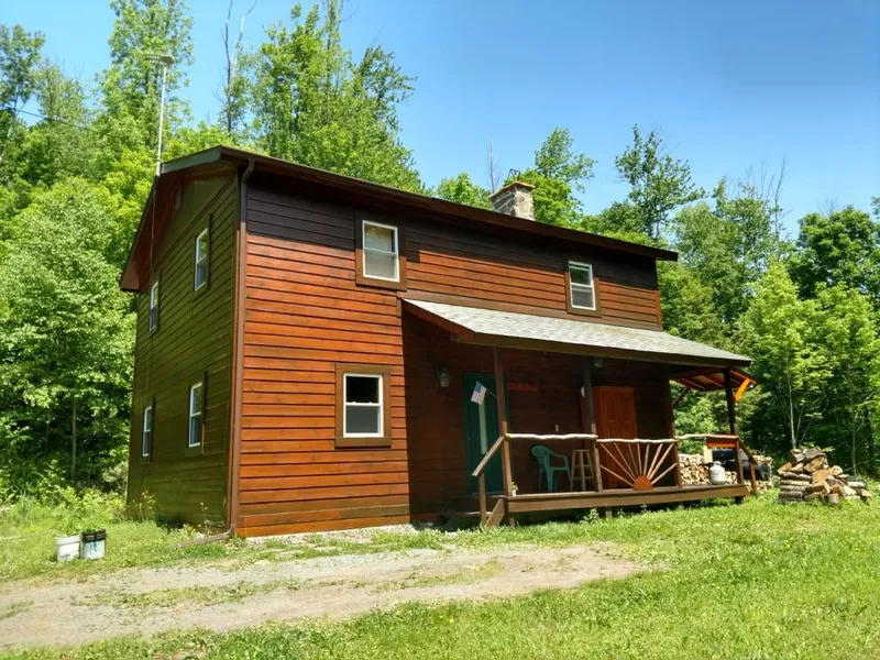 The PERFECT Camp, Starter or Retirement Home on over 22 acres of PRIME land. This two story custom built cabin features the privacy and seclusion you expect from a Country Home, Hunting or Recreational Property. Having a large open area floor plan complete with kitchen downstairs. And 3 Bedrooms and a Full Bathroom with soaking tub and stand up shower upstairs. The home features exposed timber beams, nice laminate flooring throughout, ceiling fans, double pane windows, gorgeously stained and polyurethane exterior wood siding, high efficiency oil hot water heat and back up wood stove heating. Poured concrete foundation with dry crawl space basement. The property includes a heated two bay garage with workshop and attached lean-to. Plenty of room for boat or RV parking. Perfect for family gatherings! Approx. 4 miles to Guilford Lake with Boat Launch and Fishing Access for Trout and Bass. Ch...
