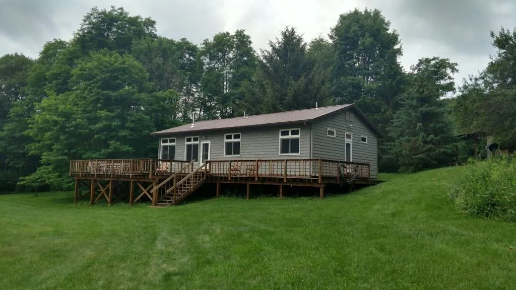 Unbelievable opportunity to own this exemplary property featuring a 2 bedroom cottage AND a beautiful newer 4 bedroom Contemporary home. Set down a long level driveway for privacy on 65 gorgeous acres. The cottage built in 1985 was tastefully renovated and features hardwood flooring, sun room and multi tiered deck connecting with the contemporary home. One loft bedroom up and one large bedroom downstairs. Full bathroom and dry, walk out basement for laundry and storage. The Contemporary home features a spacious open floor plan with vaulted ceilings, large picture windows and beautifully finished pine walls. Each of four bedrooms complete with ceiling fans, large windows and wardrobes for clothing. Large full bathroom. Spacious wrap around deck for entertaining offering scenic views. Large 30x40 two bay garage with extended work area and lean-to for your machinery and toys. The land is se...