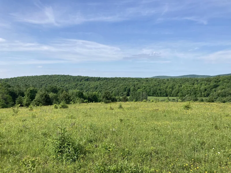 New York mostly wooded land with timber, great view and adjoining Charles E. Baker State Forest for sale. The property has approximately 22 acres of open field that is reverting back to woods and 40 acres of hardwood timber. This diverse habitat creates endless opportunities for many different game and non-game species alike. Having this much open land also gives many opportunities for potential building sites to enjoy the excellent view across the valley. There is no lack of sign for deer and turkey and grouse with abundant game trails throughout the hardwoods and along the edge of the drainages. The edges of the open fields are loaded with apple trees and brush, perfect for upland bird habitat. It also directly adjoins the 9,400 acre Charles E. Baker State Forest which boasts over 100 miles of connected trails that can be used for hiking, horseback riding, snowmobiling, snowshoeing...