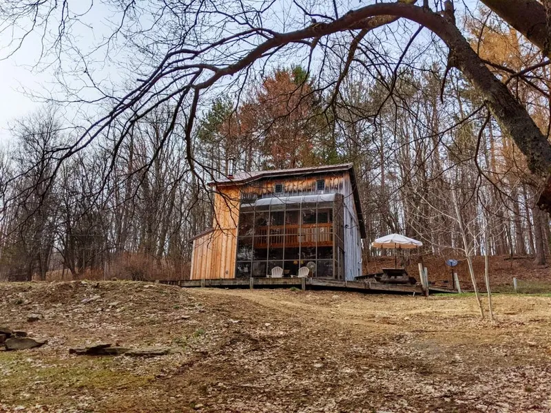 The perfect affordable year round Recreational Get-A-Way in the Country. located on a very quiet Town maintained road with no neighbors in sight. This custom built cabin features an all glass front to let in the sunshine and views. Enjoy year round with propane heating and thermostat controlled Kenstoker coal stove. Beautifully renovated with new kitchen, new flooring throughout and bathroom featuring all wood shower. Spacious open floor plan downstairs with kitchen bar and vaulted ceilings. Plenty of storage with the back utility/laundry room and half bath. Nice yard space and large deck for parties and entertainment. Even on just 6 acres of land, the hunting can be very good with the owner taking many deer and turkeys throughout the years. Borders beautiful farmland in back and large woodlot with stream and pond across the road. Within walking distance of Skinner Hill STATE FOREST for ...