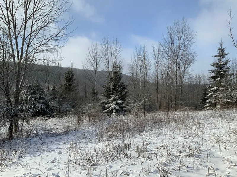 5.05 acres along quiet country road offering year-round road access, slight uphill grade from road boasting mountain views all around. Ideal location for getaway camp or cabin located within minutes of several large state forests for hunting and exploring. The land has 398 feet of road frontage and goes back 679 feet consisting of open meadow and scattered pine, apple thickets, hardwoods, and some popple for cover. Easy location for building a cabin just punch in a driveway and access the building plateau about 150 feet into the property and you can have a secluded hideaway with great views.