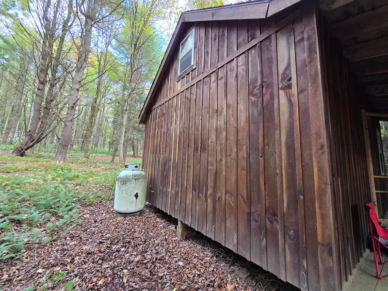 This property is an outdoor recreation dream come true with a really nice 320 square foot off-grid cabin with a loft nestled in a very secluded location. Electric can be brought in with a pole being very close to the cabin. A propane heater is already installed and a loft that can easily sleep 3-4 people or more. This cabin is just waiting for someone to put the finishing touches on it. It will require some work but can be used as it is. Outside is a small covered porch; with a little work, there would be enough room to pull in a camper or set up tents to camp outside for additional family and friends. This property has two parcels, so the other one could have another cabin or camp area added. The property is mostly wooded with a mix of hardwoods and pine. This area is renowned for its wildlife, including trophy whitetail and turkey hunting. Hunting, cross-country skiing, mountain biking...