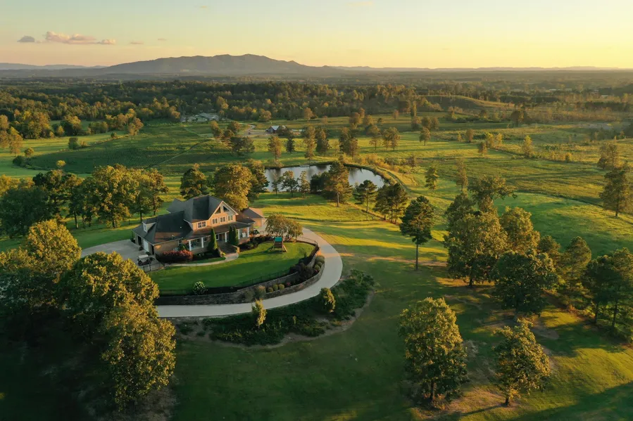 The Home:At the end of a long private driveway, leading you into the heart of the property, you will find an immaculate home on a hill, with long range, panoramic views, overlooking a well-rounded and diverse farm. The custom 4 bedroom 5 bathroom, 5,500 s.f. home is teeming with unique added touches of craftsmanship and beauty. Inside the home you will find an impressive two-story family room, anchored by a gorgeous stacked-stone fireplace. Two sets of French doors on either side of the fireplace lead to the back porch, where you can enjoy the sunset, as well as views of the fenced backyard and the trees beyond. The kitchen, which opens to the family room, is spacious and perfect for entertaining. It includes two islands, a prep sink, plenty of storage, and a breakfast nook. The master suite is located on the main floor and features a tray ceiling, his and hers closets and separate vanit...