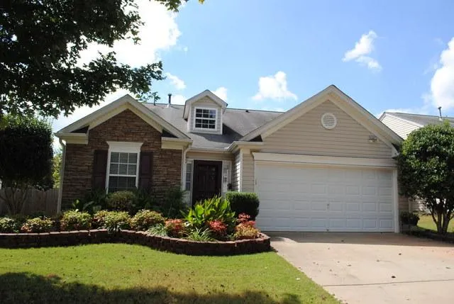 Wonderful ranch style living at its finest! Open concept floor plan with vaulted ceilings throughout and hardwood floors in living areas. The large great room with beautiful gas log fireplace & a wall of windows is adjacent to the dining area. The kitchen features multiple workspaces, many cabinets, a pantry, a pass through to the living area and a breakfast area. French doors with retractable screens lead you onto the massive covered patio with ceiling fans and the private beautifully landscaped fenced back yard. Back inside you will enjoy a large bright master bedroom and on suite master bath with double vanities, a large soaking tub, a separate shower & big walk in closet. Two additional bedrooms and a second bath complete the interior of the home. The professionally maintained front yard includes an irrigation system for the meticulously groomed landscape. The home features a...