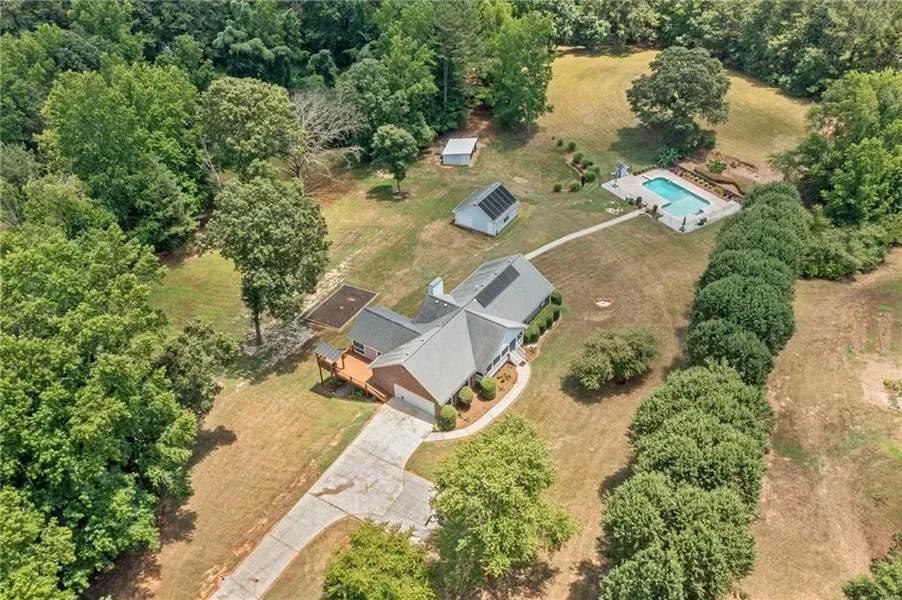 Introducing a captivating Brick Ranch home nestled on 3 private acres. The freshly painted interior and beautiful hardwood floors exudes warmth and modernity throughout, complementing an updated kitchen adorned with granite countertops and new stainless appliances. The main level features a luxurious primary suite with a newly renovated bath and a dream closet, providing a private sanctuary. An expansive all-weather room invites year-round enjoyment, perfect for relaxation and entertainment. Descend to the fully finished basement, which includes a second kitchen, spacious family room, office space, and four additional bedrooms, offering flexibility and ample accommodation for guests, or perfect for a multi-generational home. This home offers solar panels enhancing energy efficiency, and integrated air purifier and dehumidifier system for optimal indoor comfort. Enjoy the inviting ingroun...