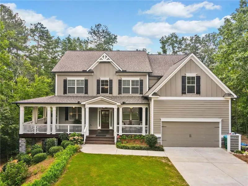Welcome to your dream home! This exquisite property boasts 5 spacious bedrooms and 5 luxurious bathrooms. As you enter the grand 2-story foyer from the large covered front porch and charming side swing, you'll be greeted by an impressive trim package in the elegant dining room, which comfortably seats 12. The open-plan living area features a striking stack stone fireplace and vaulted ceilings, creating a bright and airy atmosphere. Expansive windows and a bay window in the breakfast area offer picturesque views of the deck and the level backyard. The kitchen is a chef’s delight, equipped with abundant cabinetry, a walk-in pantry, sleek granite countertops, and modern stainless steel appliances. Conveniently, the 2-car garage is located on the same level as the kitchen, providing easy access. Upstairs, the luxurious primary suite awaits, featuring a double trey ceiling, a soaking tub, a s...