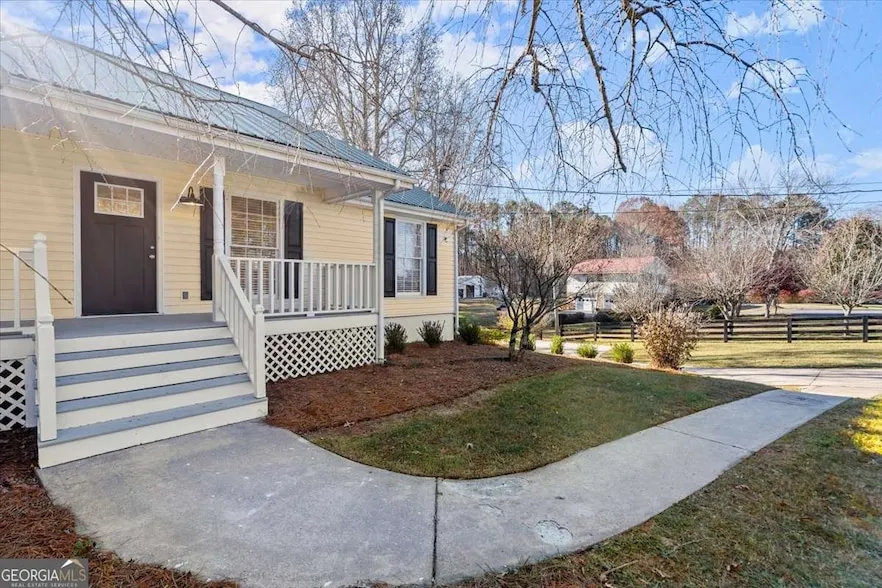 Create lasting memories in this move-in ready ranch on an unfinished basement situated on a large 1-acre estate. Welcome home to this beautifully renovated property with fresh interior paint, new deck, new flooring throughout, new interior/exterior doors, newer HVAC, new PEX plumbing, and updated kitchen and bathrooms. You will first notice the rocking chair front porch, mature landscaping, and flat lot. Experience the comfort of the spacious living room with new hardwoods that opens to the dining area with on-trend chandelier. Enjoy cooking your favorite meals in the light and bright kitchen with quartz countertops, white tile backsplash, white cabinets with on-trend hardware, can lighting, stainless fixtures, new stainless appliances including dishwasher, electric slide-in oven range, refrigerator, and built-in microwave. Getaway to the primary bedroom with new light/ceiling fan combo and new hardwood flooring. Reset after a long day in the ensuite primary bathroom with new double vanity with quartz countertop, new on-trend hardware, stylish lighting and mirror, and tiled shower/tub combo with built-in shelving. The two secondary bedrooms with hardwoods and lighting share an updated bathroom with new vanity with quartz countertop, new hardware, lighting, mirror, and shower with new glass enclosure. Relax or entertain on the new deck perfect for grilling and enjoy the expansive, flat yard. There is plenty of extra space in the unfinished basement for storage or finish for all of your lifestyle needs. Discover the possibilities with AG zoning, complete with a spacious outbuilding set on a sturdy slab - perfect for your next project or storage needs. No HOA and close proximity to parks, shopping, and restaurants complete the attributes that make this your must-have home.