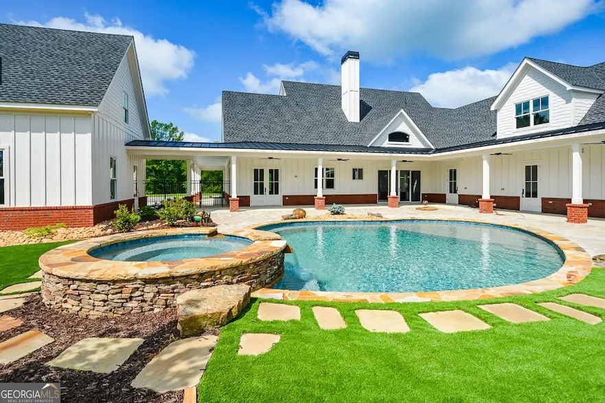 SELLER MAY CONSIDER SUBDIVIDE! RARE AND IMPRESSIVE NEW CONSTRUCTION FARM HOME WITH POOL, 4-CAR GARAGE, IN-LAW SUITE WITH MULTIPLE POLE BARNS, PASTURES, STORAGE AND A SECOND 5 BEDROOM 5 BATH MODULAR HOME, WITH 2 KITCHENS, PLUS A TINY HOME (CURRENTLY STORAGE) ON 145+/- BEAUTIFUL ACRES ONLY MINUTES TO AMAZING RESTAURANTS AND SHOPPING IN CANTON GA. 1 HOUR TO HARTSFIELD JACKSON AIRPORT, 1.5 HOURS TO CHATTANOOGA TN, 30 MINUTES TO CARTERSVILLE GA AND ABOUT 50 MINUTES TO ELLIJAY GA. MAIN BARN HAS 100x40 UNDER ROOF WITH CONCRETE FLOORS, GARAGE DOORS AND 4 RUNS PLUS 2 FEED ROOMS! THERE'S AN 80x60 PULL-THRU POLE BARN FOR YOUR MOTORHOME, RV'S, TRACTORS AND TOYS -- CONTAINER STORAGE UNIT AND 2-STORY TINY HOME BEING USED FOR STORAGE COULD BE USEABLE WITH SOME MODIFICATIONS. PROPERTY IS ROLLING AND BEAUTIFUL WITH ACCESS ON ADDINGTON, 140 AND SALACOA ROAD. THE NEW CONSTRUCTION HAS BEEN METICULOUSLY PLANNED AND THOUGHTFULLY DESIGNED FOR THE ULTIMATE IN FARM LIFE ENJOYMENT AND RELAXATION. OVERSIZED 2-CAR GARAGE AT KITCHEN SIDE OF HOME HAS BUILT-IN CABINETS AND DRAWERS, PLUS A WASH BASIN SINK AND OPENS TO POOL AREA. GARAGE ENTERS TO FULL-SIZED "PANTRY ROOM" WITH BUILT-IN SHELVES AND CABINETRY. THE MORE THAN AMAZING KITCHEN HAS THE LARGEST CAMBRIA COUNTERTOPS THAT YOU CAN IMAGINE WITH UPGRADED FAUCETS AND LARGE CERAMIC FARMHOUSE SINK. MASSIVE ELECTROLUX BUILT-IN STAINLESS STEEL REFRIGERATOR, MATCHING STAINLESS SHARP MICROWAVE AND ASKO DISHWASHER COMPLIMENT THE PRO-LINE ILLVE 6-BURNER + GRIDDLE GAS STOVE AND OVEN. PROPERTY SERVICED BY TWO 500 GALLON PROPANE TANKS FOR COOKING, POOL HEATER AND BACKUP GENERATOR! THIS HOME IS SURROUNDED BY COVERED PORCHES AND THE AMAZING POOL AREA IS NO EXCEPTION, WITH RELAXING SEATING AREAS UNDER SHADE, WITH WATERFALL FEATURE AND LOUNGING SHELF, ARTIFICIAL TURF SURROUNDS POOL AREA FOR LOW MAINTENANCE. GUEST HOUSE OR IN-LAW SUITE HAS 2 OVERSIZED GARAGES WITH BUILT-IN CABINETS AND OVERLOOKS POOL AREA -- BATH STUBBED BUT SPACE IS UNFINISHED BUT SHEETROCKED -- AMAZING STORAGE OR GAME ROOM, HERE IS A LIST OF THE FEATURES OF THIS PROPERTY WHICH BENEFIT THE NEW OWNERS: 2 feed rooms. Separate run-in shed in one pasture. 2 other sheds. Container for storage with electric. Small storage building with electric. 2 story building with kitchen area that needs a few items to be an apartment. Block building for storage with electric. House with 5 bedrooms and 5 baths and 2 kitchens. Landscaping at house with pool. Trails already cut thru out the property. Roads thru out the property. Very private, there are 26 acers of fenced pasture. Over 1,700 feet of potential commercial road frontage on State Route 140. Over 1320 feet of road frontage on Salacoa Road. Over 210 feet of road frontage on DeBord Drive. Custom Blinds in whole house. Heated towel racks in Master Bath and other downstairs bath. Ceiling fans in all rooms. Master bedroom opens onto pool area. All baths have custom tile. All baths have frameless glass shower enclosures. Walk-in spa tub in master bath. Two master bedroom closets. Custom cabinets thru out the house. TV in master bedroom, master bath, downstairs bedroom, downstairs bath, great room, and office. Cambria Quartz surfaces in kitchen--counters and backsplash. Drawer microwave. Built in freezer and refrigerator. Beverage refrigerator. Ilvie dual fuel range. Large walk-in pantry. Granite top on vanity in powder room. Large mud/laundry room. Office with custom built-in desks and cabinets. Lots of closets. 2 bedrooms with bath each upstairs. Porch upstairs with tile floor. Marvin fiberglass windows and doors. Mahogany grand entry door. Huge finished bonus room. All concrete finished with the Guardian finish--garages, porches, and parking pads Pool with amazing waterfall Hot tub. Cabinets in both garages. Detached garage has apartment fully finished. Washer dryer stack in apt. Separate heat and air in apt. 145+-AC Barn concrete floor--5 garage doors on barn.
