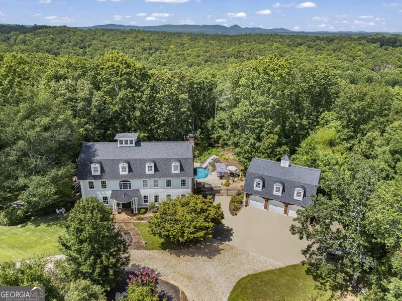 PRICE REDUCTION + MOTIVATED SELLER! Seller is relocating for work and has reduced the price to make this incredible property one of the best values on the market. Now priced below fair market value! "Timeless Luxury with Modern Indulgence" Welcome to a rare opportunity to own one of Ball Ground's most distinctive estates, an extraordinary Cape Cod-style residence set on 3.76 private acres at the end of a quiet, wooded lane. Just minutes from the charm of downtown Ball Ground, and less than an hour from both Atlanta and the Blue Ridge Mountains, this home offers the perfect balance of retreat and accessibility. Crowned with a widow's tower, the home's striking architectural profile immediately sets it apart. Inside, over 9,000 square feet of refined living unfolds across 8 bedrooms and 6.5 baths, crafted with timeless old-world detail and modern convenience. Highlights include: Heated Saltwater Pool Retreat - Travertine decking, fountains, and wooded/seasonal Mountain views frame a custom-built pool with slide and outdoor shower. Grand In-Law Quarters - A private 3-bedroom suite with its own entrance, driveway, kitchen, dining room, living spaces, laundry, and marble bath. Perfect for multigenerational living or long-term guests. Entertainment at Its Finest - A split-level theater room designed for cinematic immersion, plus expansive wraparound porch, fireplaces, and outdoor gathering spaces. Expansive Grounds - Trails, fruit trees, berry bushes, and even a private shooting range create a lifestyle as active as it is serene. Chef's Domain - Wolf induction oven with hood and pasta arm, dual dishwashers, multiple pantries, and over 2.5 kitchens for culinary flexibility. Superior Craftsmanship - Real hardwood and marble floors, wainscoting, Crawford ceilings, clawfoot tub, and custom mantles throughout. Additional Touches - Tesla charger, full workshop, studio space, hardwired security and fire system, and a spiral staircase to the widow's peak with breathtaking views. The primary suite offers a true retreat with two walk-in closets, a full dressing room, and a spa-inspired bath. Designed for multigenerational living, entertaining, and private retreat alike, this estate blends Cape Cod elegance with the comforts of modern luxury. It is not just a home, but a landmark property, Ball Ground's true diamond.
