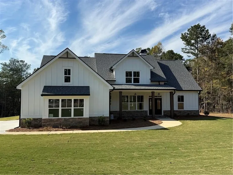 The main level features an open floor plan with a stacked stone wood-burning fireplace as the centerpiece of the living area. The kitchen is designed for both cooking and gathering, complete with a 36” slide-in range, oven, microwave, and dishwasher, along with upgraded lighting and trim throughout. The owner’s suite retreat includes a relaxing garden tub and tile shower, while two additional bedrooms share a Jack-and-Jill tiled bath. A convenient half bath for guests is also located on the main level. Upstairs you’ll find a private bedroom with full bath and a large office/flex room, offering the perfect balance of work and relaxation. Enjoy outdoor living year-round on the covered patio with its own fireplace, overlooking the partially sodded four-sided yard. Additional features include a 2-car garage pre-wired for an electric vehicle outlet. Located in the desirable Hawks Crest community of Waleska, GA, this home is designed for both comfort and lifestyle. Estimated home completion is end of October. Don’t miss your chance to make this home yours—schedule a showing today!