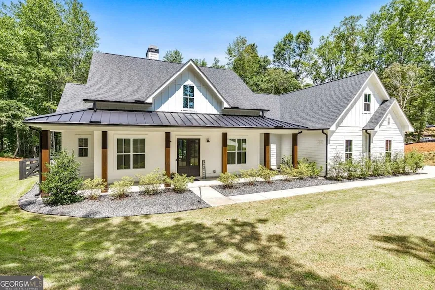 Looking for a home that checks all of your boxes? Look no further! Welcome to this stunning 2023-built modern farmhouse, offering 4 bedrooms and 3 baths on a picturesque 1.5 acre lot in a prime Woodstock location. From the moment you step onto the charming rocking chair front porch, you'll feel right at home. Inside, the open-concept design is filled with natural light, showcasing a bright and airy living space that's perfect for both everyday living and entertaining. The chef's kitchen is a true showpiece with an expansive island, quartz countertops, stainless steel appliances, a farmhouse sink, and a large walk-in pantry. An office sits just off the main living area, providing a quiet space to work from home. The main-level primary suite is a luxurious retreat with a spa-like bath boasting a double shower and dual vanities. The oversized walk-in closet is a dream and connects directly ...