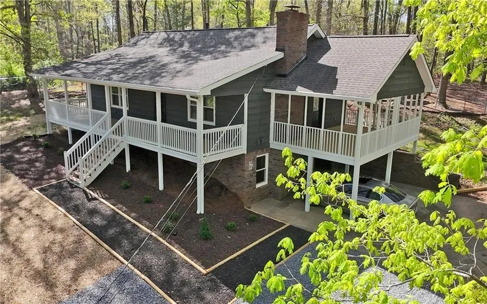 This ranch style cottage is situated on a quiet wooded hilltop and has just been completely renovated and updated. Everything is new including HVAC, plumbing fixtures, lighting, flooring, interior and exterior painting, doors and door hardware, new high efficiency tilt-in glass windows, flooring, kitchen cabinets and appliances, plumbing fixtures, sheetrock and trim, closet shelving, whole house fan, gutters and downspouts, landscaping, parking pads. No HOA so park your RV or boat on one of the new parking pads. The roof is five years old. The home also features large covered front and side porches and a fenced backyard is perfect for dogs. Inside features a wood burning, rock-faced masonry fireplace, perfect for those chilly winter nights. Located less than a mile from Reinhardt University, this property is across the street from the college's 7 mile system of mountain biking and hiking...