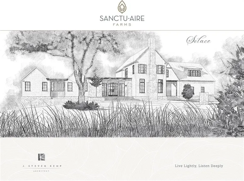 Now offered The Solace home design is available on Lot 5 ( 6.48 acres ) at Sanctuaire Farms, a gated 460-acre farmstead community in Ball Ground, Georgia. This peaceful 5-acre homesite invites you to slow down, breathe deeply, and embrace a life rooted in presence, nature, and intentional design. Solace is a quiet refuge tucked into the rhythm of the land. Here, life slows to a meaningful pace - where mornings begin with birdsong and evenings glow with golden light. Every detail is designed to offer peace, presence, and the luxury of living simply. Crafted with care and elegance, Solace offers: 3 Bedrooms | 3 Full Baths + 1 Half Bath Optional Bonus Room with Additional Bedroom & Bath 2,807 - 3,297 square feet Every detail is thoughtfully designed to inspire calm and clarity - from the serene morning light filtering through your windows to the expansive porches that open to the rhythm of ...