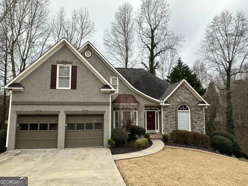 Tucked away on a quiet cul-de-sac in Deer Run West, this thoughtfully designed 5-bedroom home offers space, flexibility, and comfort in all the right places. The main level features an open, flowing layout with a bright dining area leading into a well-appointed kitchen with granite countertops, backsplash, oversized island, and views into the two-story family room. The primary suite is conveniently located on the main floor and includes dual closets and a spacious bath with double vanities. Upstairs, you'll find three additional bedrooms and a full bath. The finished terrace level is ideal for multigenerational living or guests, offering a private living area with tray ceiling, full kitchen, bedroom, bathroom, laundry, and a workshop space. Step outside to enjoy a serene backyard setting from the expansive two-story deck-perfect for entertaining or unwinding in the hot tub. Recent updates include fresh interior paint, mature landscaping, and two HVAC systems replaced within the last five years. Deer Run's resort-style amenities include multiple pools with a splash pad, pickleball and tennis courts, basketball courts, playgrounds, and a baseball field. Conveniently located near shopping, dining, and everything Towne Lake and Woodstock have to offer-this home checks all the boxes.