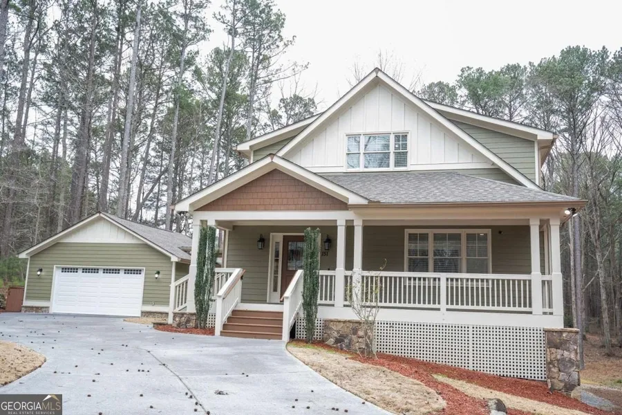 Stunning Farmhouse-Inspired Estate on 2.32 Private Acres with Pond & Lake Views. Welcome to your dream home in prestigious Holly Springs-Canton, GA, where refined craftsmanship meets serene country living. This exceptional farmhouse-inspired estate sits on 2.32 private, wooded acres with peaceful pond views, just moments from Corps of Engineer land, scenic horse trails, and Lake Allatoona. Offering over 4,600 sq. ft., 4 bedrooms and 5 bathrooms, the home features a spacious, thoughtfully designed layout including dual primary suites and flexible spaces for work, play, and relaxation. The main-level primary suite showcases French doors opening to the deck, his-and-hers walk-in closets, a soaking tub, double vanities, and a separate tiled shower. The gourmet kitchen is ideal for entertaining with granite countertops, stainless steel appliances, a built-in oven and convection microwave, and abundant cabinetry, flowing seamlessly into elegant living areas highlighted by versatile durable floors, custom trim and balusters, designer tile baths, and a cozy gas fireplace. A fully finished basement elevates the home with full-scale entertaining space, expansive recreation and media areas, plus a boutique-style private room perfect as a glam suite, custom closet, or creative retreat. Everyday convenience is enhanced by two laundry rooms-one on the main level and one upstairs. Outdoor living shines with a rocking-chair front porch, wrap-around deck, and a private backyard that blends beautifully with nature, while offering exceptional future potential to add a mini-suite or in-law addition, a resort-style saltwater pool, and even a horse barn. Completing the property is a detached 2-car garage with easy kitchen-level access and ample storage. Ideally located near award-winning schools-Sixes Elementary, Freedom Middle, and Woodstock High-and just minutes from dining, shopping, and I-575, this home delivers a rare combination of luxury, privacy, and room to grow in one of Canton's most desirable settings.