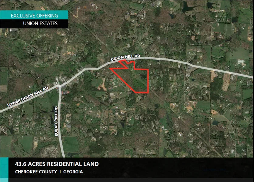 The 43.6 acres is planned for single family detached homes in Union Estates, Cherokee County, GA. The property is in an excellent school district and convenient to downtown Alpharetta, Woodstock and Canton.