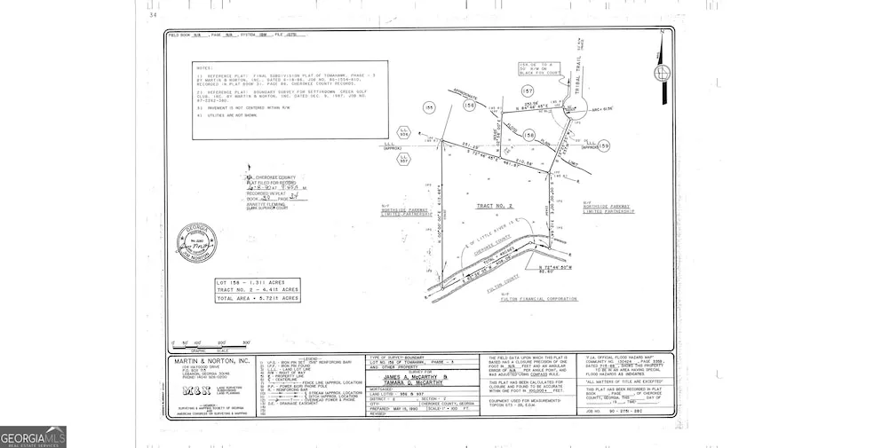 Nestled in a quiet cul-de-sac within the desirable Tomahawk community of Woodstock, this expansive 5.72-acre lot offers an exceptional setting for a custom home. Comprising Lot 158, Tracts 1 and 2, the property features approximately 490 feet of frontage on Little River, providing a picturesque natural backdrop and a sense of privacy. Ideal for buyers seeking a peaceful homesite in an established neighborhood with room to create their vision.