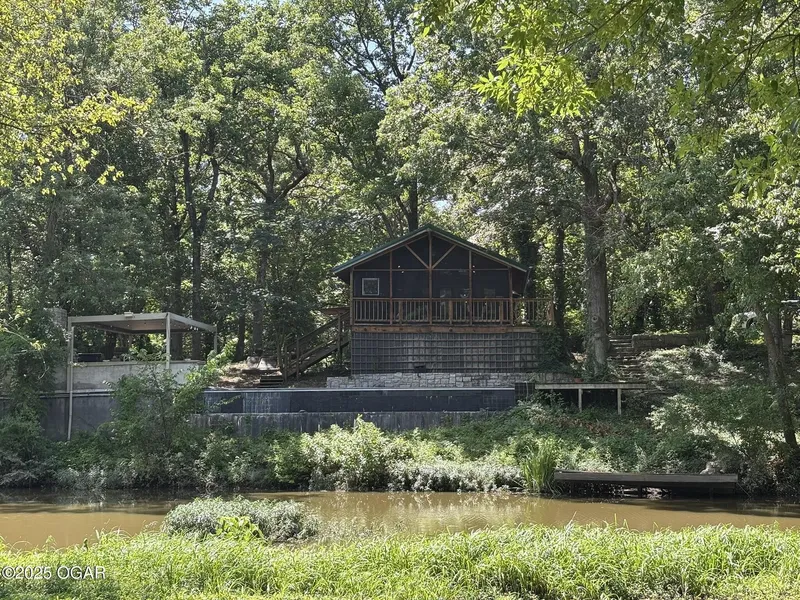 Waterfront oasis on 4.5 acres- dock, pool, cabins and shop. Escape to this one-of-a-kind 4.5 acres property on Spring River, featuring a main cabin with a spacious screened porch, infinity edge pool and outdoor kitchen overlooking the water. Enjoy a floating cabin, a separate guest cabin and a covered boat dock for direct river access. A detached 3 bay garage/shop and carport complete this rare offering-perfect for private living, entertaining, or a short term rental!