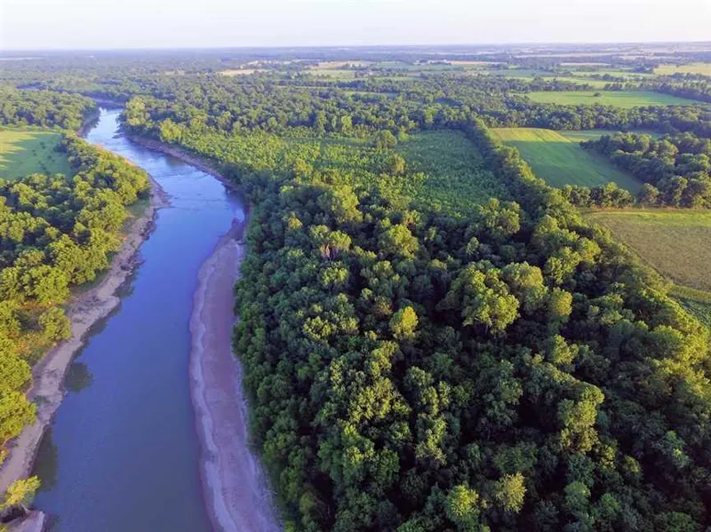 The property offers a great mix of open groves of mature trees and thick bedding cover. Mature pecans, walnuts and oaks dot the open park like areas of the farm. Dropping down a small ridge toward the creek that cuts through the property more large pecans make up a separate grove. This grove has some of the largest pecan trees in the area, and between the 2 groves there are approx. 300 mature pecans on the property. Crossing the creek via the concrete crossing the northern end of the farm is prime deer habitat. An old 30 acre ag field sitting along the river has been growing up for the past 25 years, this makes some of the best bedding in the area. An established trail leads around this thicket providing access to the river banks and the pocket of timber on the very northern end of the farm. A mile of Neosho River frontage makes up the eastern border of the farm. This stretch of river offers everything from deep holes for fishing to riffles for hunting waterfowl. At the north end of the river a large gravel bar sits along the big bend in the river channel. Just below the gravel bar sits a series of 3 riffles, these riffles will be a great spot on those cold mornings for the ducks and geese to pile into. This stretch of river is hard to access by boat during normal flow, this just adds to the great seclusion of the farm. Along with the river 2 ponds sit on the farm as well. For the past 50 years this farm has had very minimal hunting pressure, making a sanctuary for the deer, turkeys and waterfowl that call the area home.