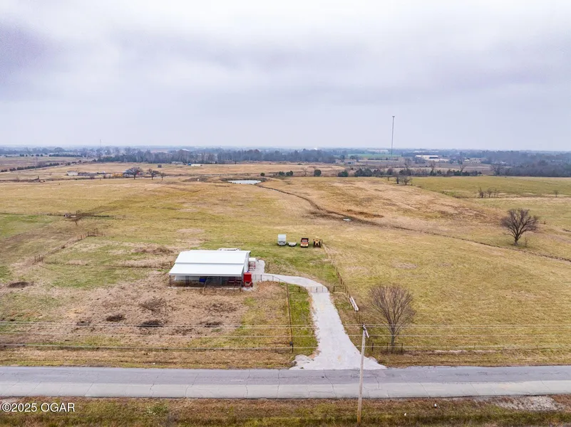 This property is currently used for cattle. It is almost 34 acres with new barbed wire fencing, a large deep pond and creek. There is a working corral and a new building that is approximately 40x30 with water and electricity on the property. There are overhead doors to make it very easy for use. The property would be a very peaceful setting for a homesite. It is minutes from Baxter Springs city limits. The entrance is on the South side on the paved road.