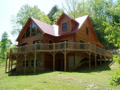 It’s okay to brag as you show this rustic beauty to your friends! This 2 bedroom, 2 1/2 bath two story chalet has a massive stone gas log fireplace, soaring cathedral wood ceilings, maple wood floors, custom maple cabinetry with corian countertops and stainless appliances. Having over 2600 sq feet of living area makes it perfect for the family or those who love to entertain The master is on the main level and features a Jacuzzi tub in the master bath. 2nd bedroom and den or office are upstairs. If you need more room, you may complete the basement that is approximately 70% finished. A 50 X 8 covered front porch and additional wrap around decks make it easy to be the perfect hostess. The kids can splash in either one of the two branches that run right thru the 2.31 gentle acres. Take a look. You will be glad you did!