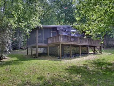 Completely renovated 2BR, 1BA log cabin with new metal roof, rock foundation, pine floors screen porch overlooking year round Buckhorn Creek. Large fruit orchard on property includes blueberries, raspberries, peaches, plums, pears, apples and cherries. Large garden area on complete flat acre with mountain views. Too cute and bordered by a rushing creek on one property border. Near USFS land. Additional acreage available.