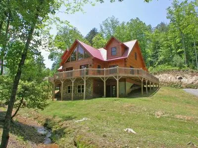 It’s okay to brag as you show this rustic beauty to your friends! This 2 bedroom, 2 1/2 bath two story chalet has a massive stone gas log fireplace, soaring cathedral wood ceilings, maple wood floors, custom maple cabinetry with corian countertops and stainless appliances. Having over 2600 sq feet of living area makes it perfect for the family or those who love to entertain The master is on the main level and features a Jacuzzi tub in the master bath. 2nd bedroom and den or office are upstairs. If you need more room, you may complete the basement that is approximately 70% finished. A 50 X 8 covered front porch and additional wrap around decks make it easy to be the perfect hostess. The kids can splash in either one of the two branches that run right thru the 2.31 gentle acres. Take a look. You will be glad you did!