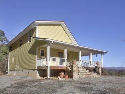 Refreshingly different floor plan in this phenomenal 2 bedroom 2 bath chalet offering approx. 1600 sq feet of comfortable living and fantastic long range mountain views. One will appreciate the special added touches such as the stone entrance steps, pecan floors throughout, custom tile shower, Jacuzzi tub with tile, metal roof, hardiboard siding, PRIVATE upstairs bedroom plus oversized landing perfect for computer/office area. Add the generous full covered front porch, dual h/a system , walk in closets, kitchen pantry, gas log fireplace and privacy that is so hard to find at the amazing price!!!