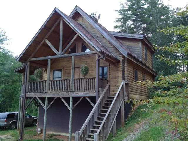 Great 2BR/2.5BA log home with office on 7.829 acres near Lake Apalachia. Master suite with walk-in closet upstairs; second bedroom, office and bath with Jacuzzi tub on main floor. Woodburning fireplace in great room. Granite countertops, disposal, two covered porches, and private well. Woodburning stove, half bath, and laundry room in full, unfinished basement. Comes completely furnished