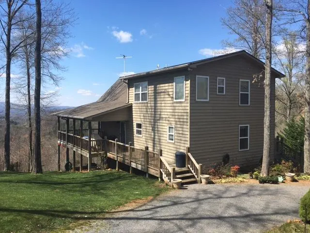 What's not to like about this 3 bedroom, 3 bath chalet perched on a GENTLE lot with TREMENDOUS long range mountain views! 1.64 acres and located at the end of the road, this custom beauty boasts many extras! Upstairs loft with private bedroom, Jacuzzi tub plus shower in master bath, gas log fireplace in great room and zoned 3 level heating and cooling. Large covered front porch to enjoy the nightly sunsets, two covered side porches and a lower covered patio makes for plenty of room for entertaining. The basement is plumbed for a wet bar and offers all tile floors except in the bedroom. There's also a free standing gas fireplace in the basement. Mature landscaping, circular drive, new 2 car detached garage, storage shed for lawn tools and equipment, buried gas tank and plenty of room for a garage. This one's calling your name at $310,000!