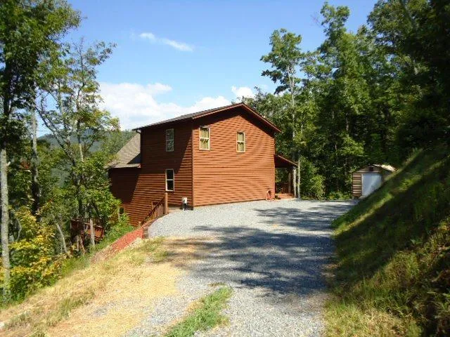 Huge cabin w/ huge views! Builder's home & it shows! Beautiful hickory cabinets & floors, stainless appliances w/commercial range hood, custom tile shower in master bath with separate air bubble jetted tub. Zoned H/A/C, pre-fab gas log fireplace, unfinished basement, loads of parking, outside storage building, upper & lower porches & decks. Best of all...lots of PRIVACY!