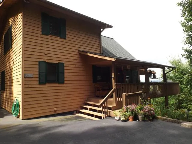 No neighbors in site!! Completely private w/great mountain views! This 2 BR/3 BA chalet has a full finished basementwith 9 ft. ceiling, bonus room & fantastic mother-in-law suite equipped with kitchen. Tung & groove ceilings in the great room & master bedroom, double sinks in master bath, gas log FP, spacious covered porches & decks, laundry room, paved driveway, storage building , good parking & less than 3 miles from town!