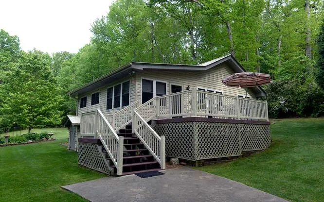 Spectacular setting--enjoy the small stream that flows below the pavilion area overlooking the landscaped yard full of honeysuckle and wild azaleas, mountain laurel & mountain ivy. Completely remodeled 2BR home is a must see.