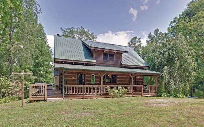 Authentic log home! 2BR/2BA with additional sleeping quarters, spacious great room accented by large stone fireplace, huge master suite, updgraded kitchen including granite countertop, downstairs offers large family room/game room, covered porches, decks, mtn. views and huge workshop. This home is private but is only 1 mile from downtown Murphy.