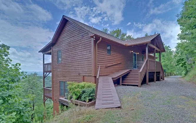 Amazing views and fantastic home!! One level cabin with finished basement, 2 fireplaces, wet bar in basement, and covered porches on both levels to enjoy stunning mountain views!! Spacious Great Room with oak floors, stainless steel appliances, and laundry on the main level. Doors from all bedrooms leading to back porch with views from every room. Private, but not secluded. Gated community with easy access to downtown Murphy and Blairsville, GA. Fully furnished!!