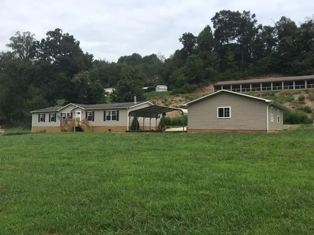 Creekfront 3BR.2BA pre-manufactured home on a permanent foundation. Large great room with island in the kitchen, wood burning fireplace, cherry floors, den, large spacious walk-in closet. This house is in immaculate condition. You will enjoy the level yard perfect for kids and garden. Fast moving creek is awesome. All this with 2car carport and a garage workshop.