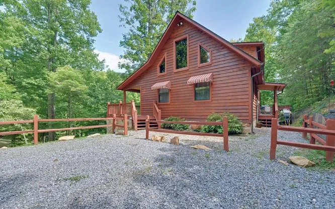 2BR/2.5BA cabin on 1.0 partially wooded acres. Wood floors and ceilings, corner rock FP w/gas logs, alarm system, utility/laundry room w/half bath, covered porches, & 16 X 14 glassed all weather sunroom.