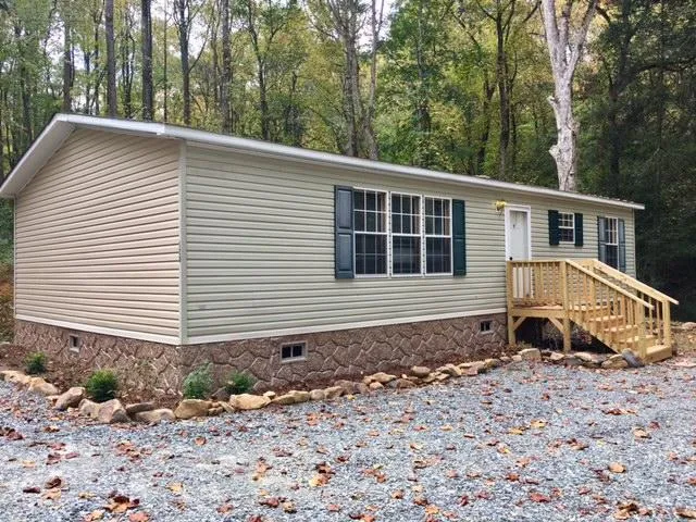 Located at the end of the road & very private is this 2 BR, 2 BA mobile home on a permanent foundation. Small stream bordering property & includes all weather spring! All kitchen appliances, c/h/a, city water & electric fireplace.
