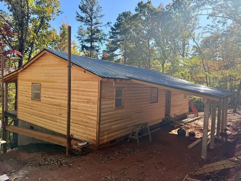 UNDER CONSTRUCTION - This BRAND NEW CABIN will be built for you! Enjoy a split floor plan offering 2 bedrooms and 2 bathrooms with ample space for comfortable living. Stunning D Log siding and metal roof make for striking rustic appeal, while the covered front porch offers a perfect spot to unwind. Inside boasts an inviting open floor plan, with plenty of natural light flooding through the windows of the spacious Great Room with custom stone fireplace. The kitchen has beautiful cabinets with granite countertops to provide elegance and comfort. Hardwood floors and T&G wood throughout bring a touch of warmth and ambiance to your home. You can choose from 2 more plans, including a 2/1 with either 768 or 864 square feet. Pictures depict a finished, lived in home - appliances and personal property not included.
